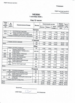 Индивидуальное меню для детей нуждающихся в лечебном и диетическом питании: не предусмотрено